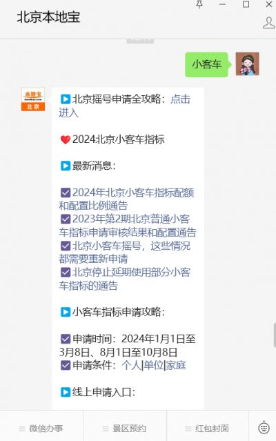 温馨提示:微信搜公众号【北京本地宝】,关注后回复【小客车】获2024年北京小客车指标配额和配置比例、小客车指标申请官网/摇号结果查询入口、申请时间/指南、资格审核结果/复核/中签家庭亲属关系核查。